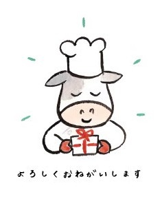当店のメインキャラクター「カシュカウ君」誕生!人気菓子「ノースウインド」のパッケージに登場していた、かわいい牛のキャラクターが、ついに当店のメインキャラクターになりました。名前は「カシュカウ君」。イラストを描いてくださった絵本作家・砂山恵美子先生が名付けてくださり、店名「カシュカシュ」と「カウ(牛)」をかけた、とてもすてきな名前です。これからのカシュカウ君の活躍にもご期待ください!